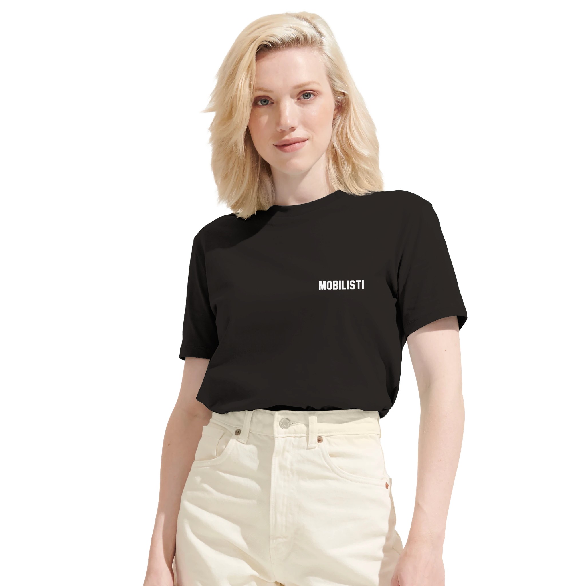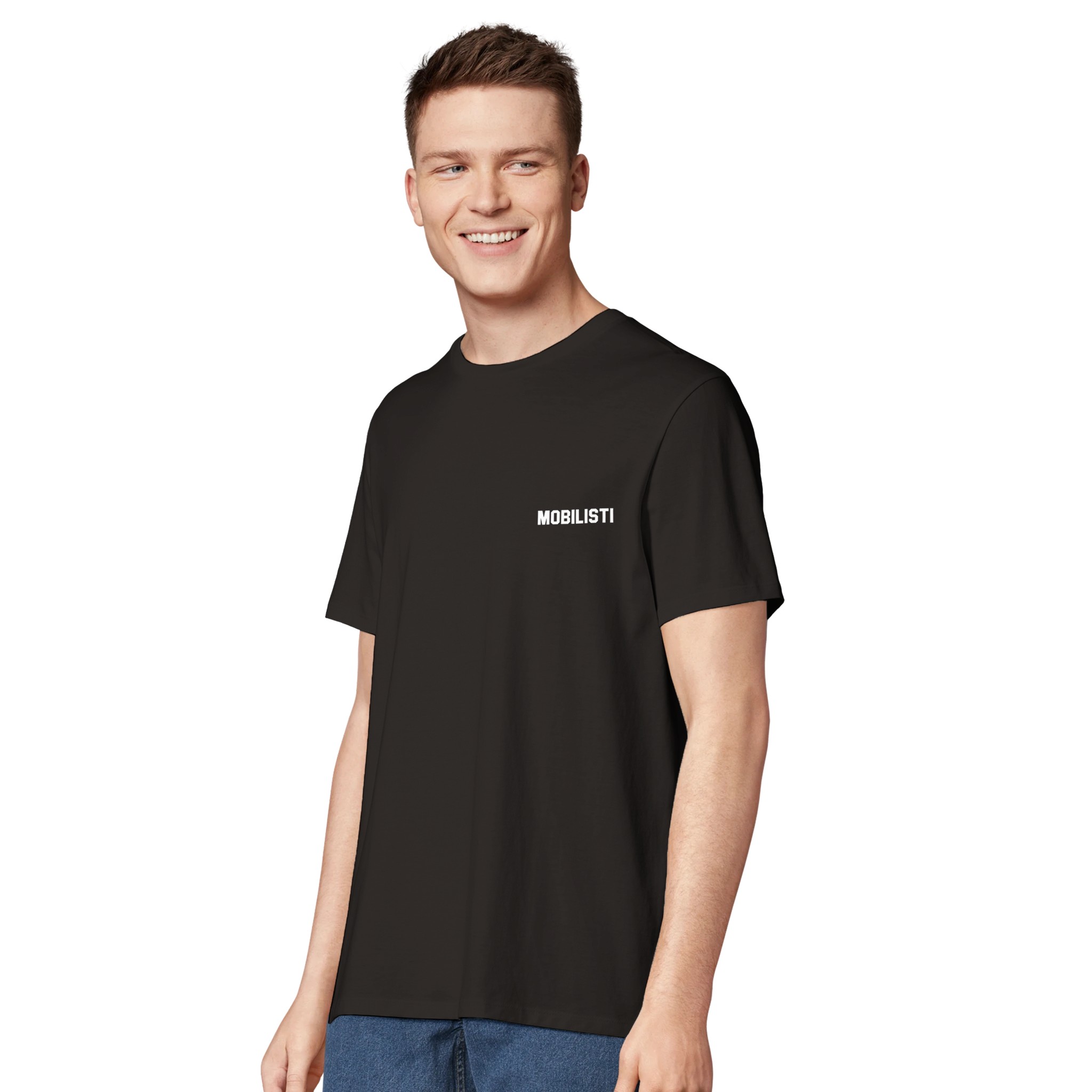 Paita on valmistettu 100 % luomupuuvillasta, joten se on hengittävä ja miellyttävä myös lämpimillä keleillä. Rintaan painettu tuttu Mobilisti-logo viimeistelee asenteen, joka erottuu sopivalla tavalla niin hallilla, tapahtumissa kuin vapaa-ajalla.