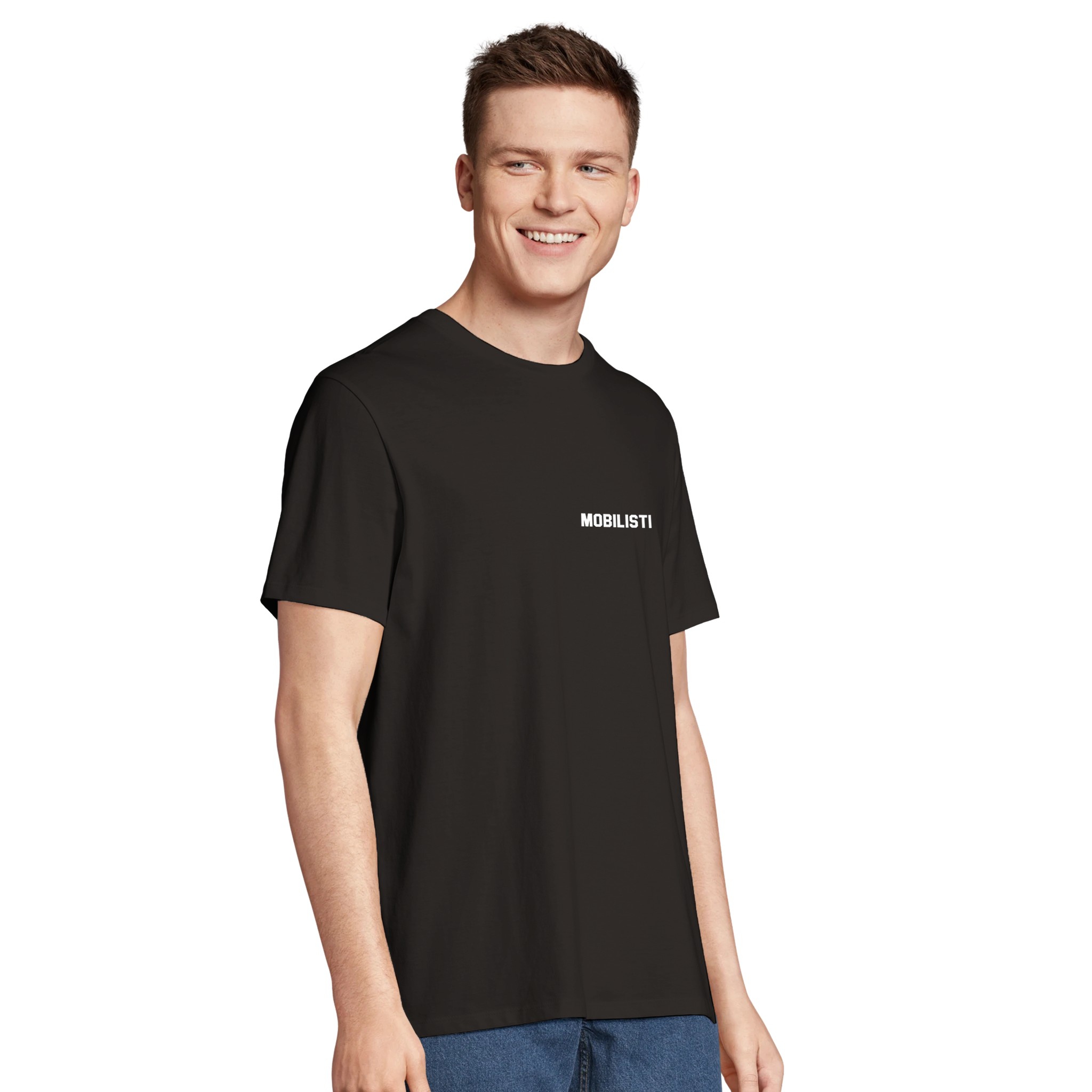 Tämä hyvin istuva t-paita on suunniteltu Mobilistin tyyliin: selkeä, ryhdikäs ja mukava päällä. Keskipaksu (175 g/m²) jerseykangas tuntuu pehmeältä ihoa vasten ja kestää käyttöä vuodesta toiseen. Resorineulos pääntiessä ja vahvistettu niskasauma lisäävät käyttömukavuutta ja pitävät paidan muodossaan myös ahkerassa käytössä.