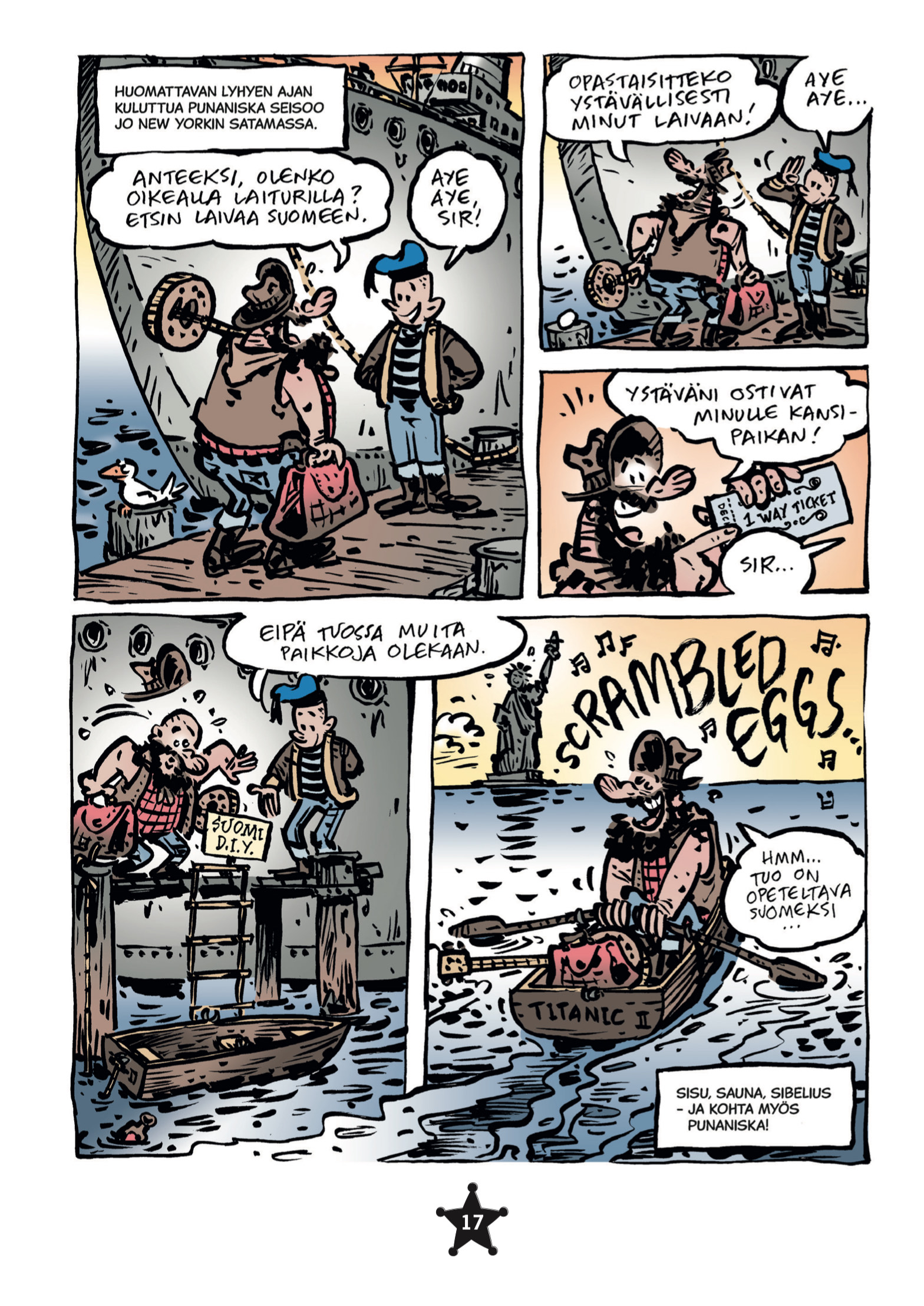 Punaniska, mies ja ääni, tulivat tutuiksi suomalaisille jo 90-luvulla Helsingin sanomien sarjakuvasivuilta ja omana 15 + 1 albumin sarjana. Nyt jo sarjakuvasankarinakin kypsään ikään ehtinyt reikäistä banjoa soittava trubaduurimme on päättänyt julkaista albumin muodossa painokelpoisimmat osat seikkailuistaan omituisista tapahtumistaan tunnetussa Suomessa. On akankantoa ja suopotkupalloa, vieraillaan sarjakuvapaikkakunnilla Mämmilästä Fingerporiin. Hinta sisältää toimituksen kotiin Postin pikkupakettina (arvo 6,90 €).