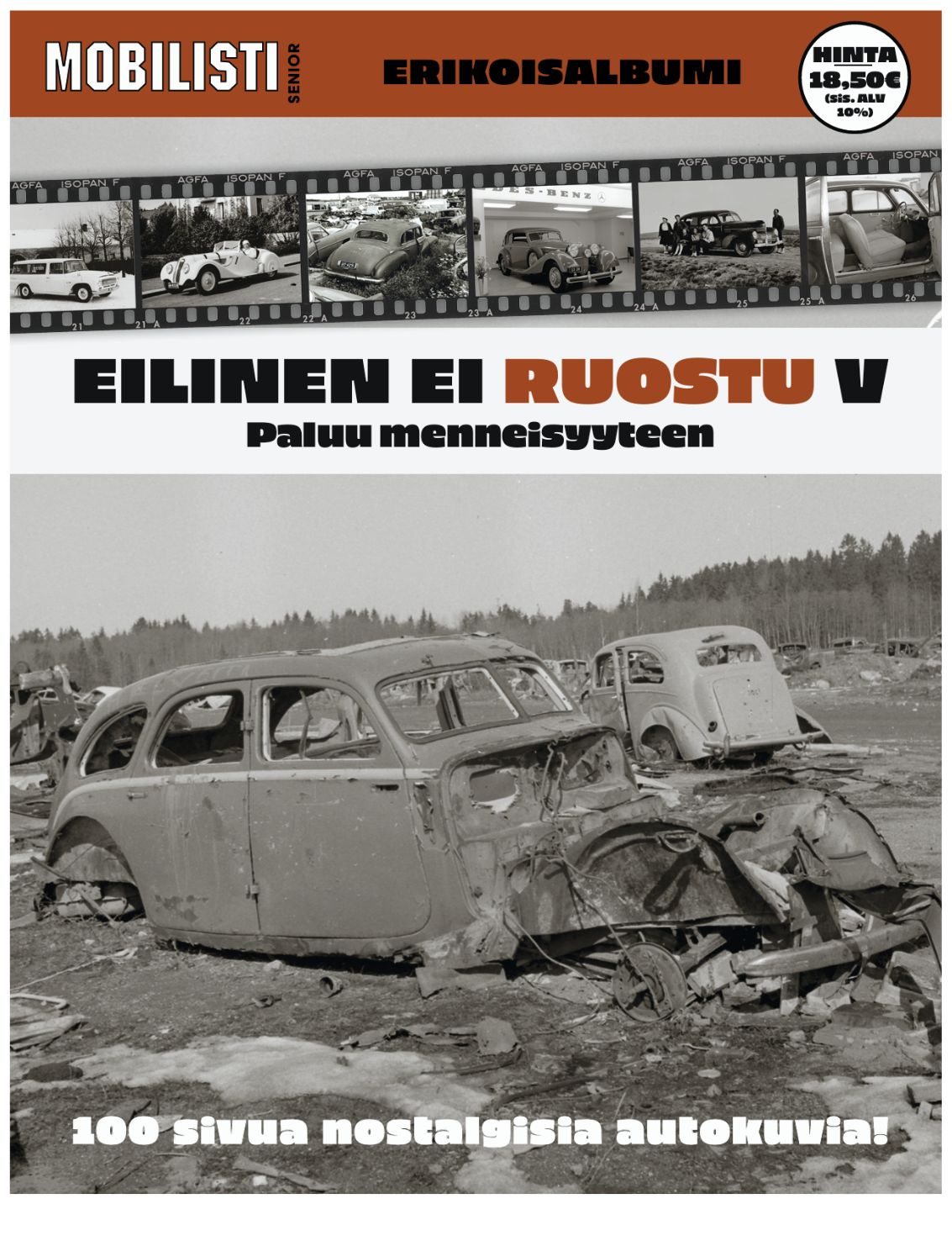 Mobilistin muuttolaatikoista tehdyt arkistolöydöt koottuna yksiin kansiin. Erikoisalbumi V – paluu menneisyyteen sisältää 100 sivua nostalgisia autokuvia ja tarinoita menneiltä vuosikymmeniltä, juuri siinä hengessä, johon vain Mobilisti pystyy.
