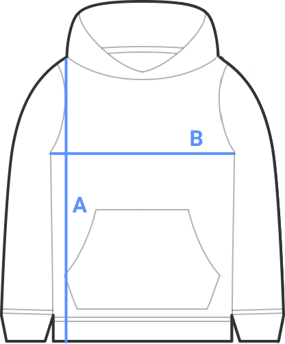 Levitä huppari tasaiselle alustalle ja mittaa leveys kainaloiden alta, noin 2 cm hihojen alapuolelta, vasemmalta oikealle.